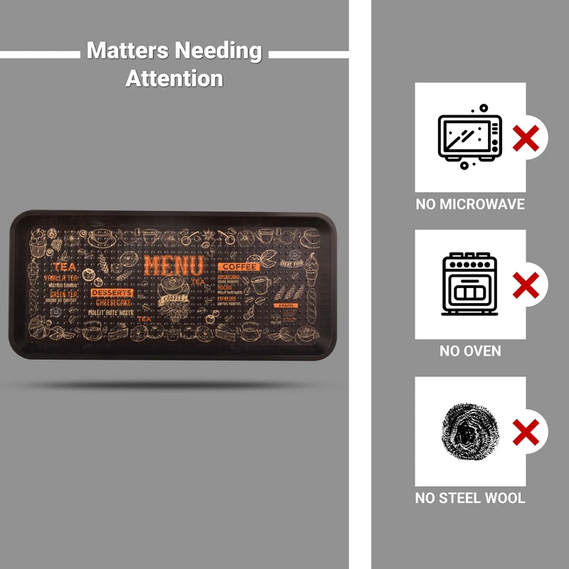 اگر صاحب کافه یا رستوران هستید، می‌دانید که زیبایی و هماهنگی لوازم پذیرایی چقدر روی تجربه مشتری تأثیر دارد. طرح «Menu» این سینی به گونه‌ای طراحی شده که دقیقا با فضای کافه‌ها و کافی‌شاپ‌ها هماهنگی دارد. استفاده از آن می‌تواند حس حرفه‌ای بودن مجموعه شما را تقویت کند.