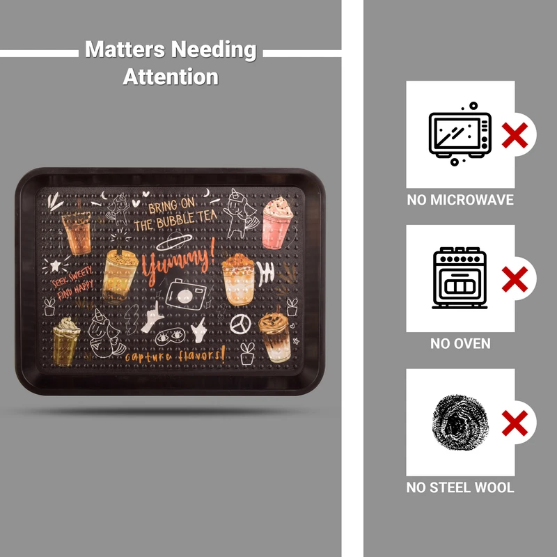 طرح جذاب Yummy بر روی سینی، این محصول را به یک انتخاب ایدهآل برای مهمانیها و پذیراییها تبدیل کرده است. شما میتوانید این سینی را در جشنها و مراسمهای مختلف استفاده کنید و از آن برای سرو نوشیدنیها و دسرهای مختلف بهره ببرید. این سینی علاوهبر کارآیی بالا، جلوهای خاص به فضای پذیرایی شما خواهد بخشید و تجربهای لذتبخش از سرو نوشیدنیها و غذاها فراهم میآورد.
