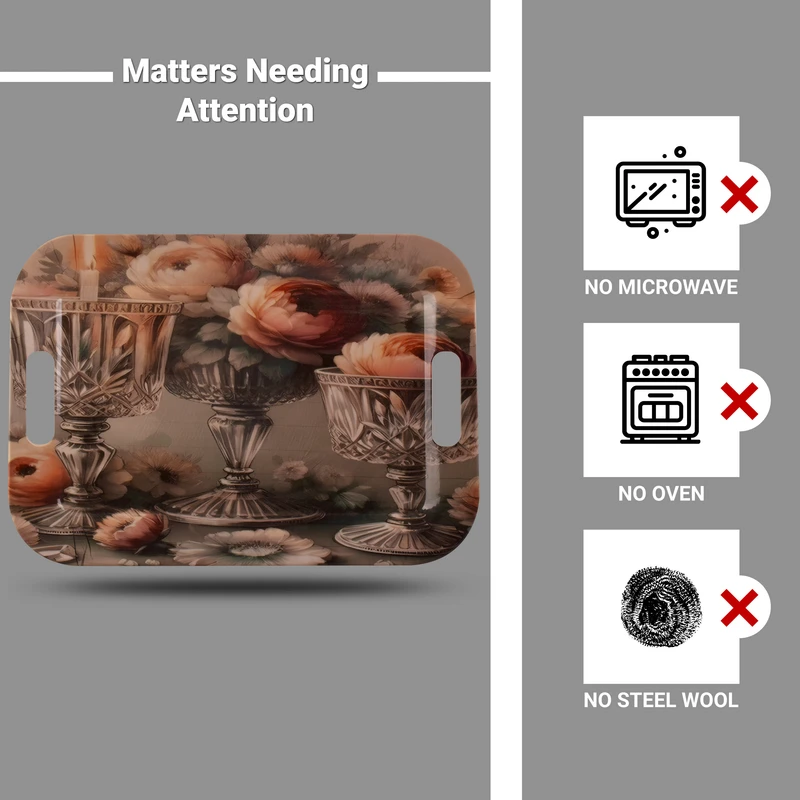 سطح طرحدار سینی بهگونهای طراحی شده که در کنار زیبایی، شلوغ یا زننده به نظر نرسد. همین ویژگی باعث میشود طرح گل رز بهراحتی با انواع سبکهای دکوراسیون، از کلاسیک گرفته تا مدرن، هماهنگ شود.