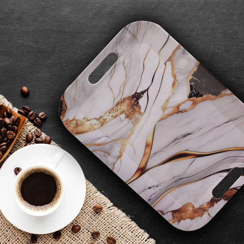 طرح مرمر و فرم ساده باعث شده این سینی بهراحتی با انواع دکوراسیون هماهنگ شود؛ از فضاهای مینیمال گرفته تا محیطهای گرم و کلاسیک. این ویژگی به شما اجازه میدهد بدون نگرانی از ناهماهنگی، از آن در فضاهای مختلف استفاده کنید.