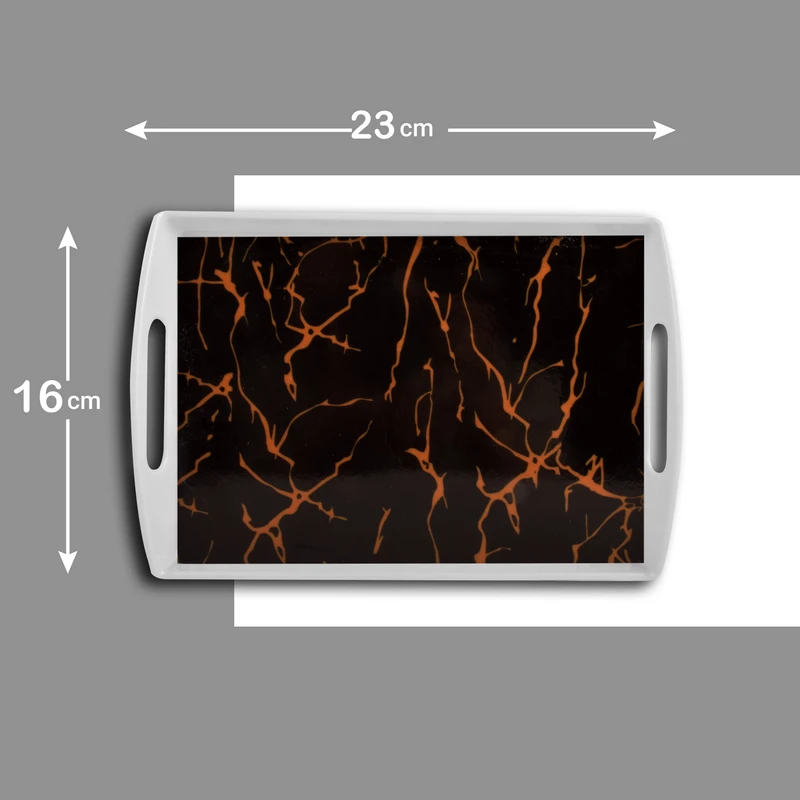 فرم مستطیلی این سینی با ابعاد 23×16×2 سانتیمتر آن را به گزینهای جمعوجور و کاملاً کاربردی تبدیل کرده است. نه آنقدر بزرگ است که فقط برای مهمانیهای خاص استفاده شود و نه آنقدر کوچک که محدودیت ایجاد کند.